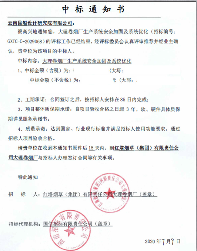 中國船舶昆船集團1周前研究院在“紅塔煙草(集團)有限責任公司大理卷煙廠生產系統安全加固及系統優化”項目投標過程中,運籌帷幄、開拓創新,采用科學嚴謹的工作方法和理念,在眾多競爭者中脫穎而出,以絕對的優勢中得此標。