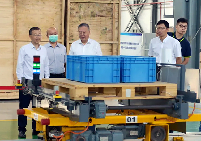 8月5日,西北工業大學黨委副書記萬小朋一行到昆船工業區參觀調研。萬副書記一行在昆船公司副總經理李攀、總工程師張家毅以及相關單位領導陪同下參觀了昆船5G自動化物流設備、AGV裝配調試現場、機場行李分揀實驗線、智慧停車系統等產品和部分生產加工現場。副總經理李攀介紹了公司的