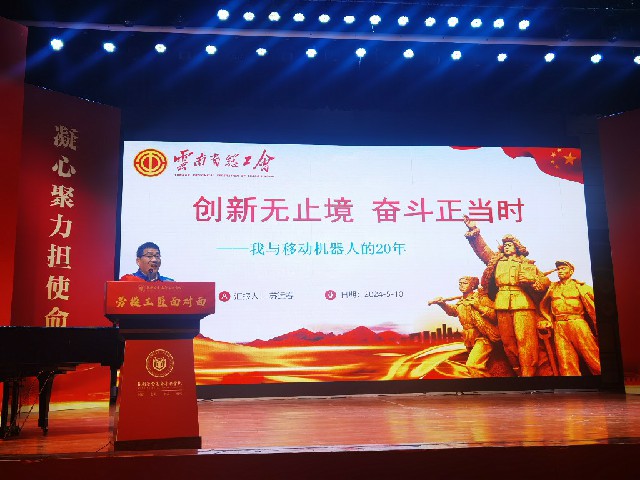 中國(guó)工會(huì)十八大代表、云南省勞動(dòng)模范、昆船智能公司營(yíng)銷中心副主任蘇運(yùn)春以“創(chuàng)新無(wú)止境 奮斗正當(dāng)時(shí)——我與移動(dòng)機(jī)器人的20年”為題講述了他在工作崗位上奮斗創(chuàng)新的故事。勉勵(lì)青年學(xué)子心懷夢(mèng)想,大力弘揚(yáng)勞模精神、勞動(dòng)精神、工匠精神,不斷提高實(shí)踐動(dòng)手能力和創(chuàng)新能力,走技能成才、技能報(bào)國(guó)之路,為全面推進(jìn)強(qiáng)國(guó)建設(shè)、民族復(fù)興偉業(yè)而不懈奮斗。