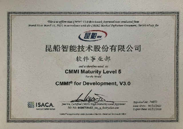 近日,昆船智能公司順利通過CMMI ML5級復(fù)審評估,這一成果標(biāo)志著公司軟件能力成熟度持續(xù)保持在行業(yè)領(lǐng)先水平,體現(xiàn)了公司在軟件技術(shù)領(lǐng)域創(chuàng)新發(fā)展的深厚積累。