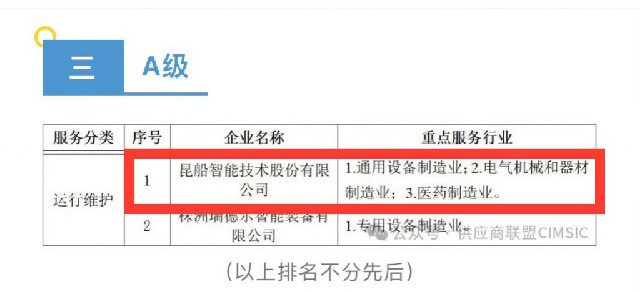 AAA!昆船智能公司獲智能制造系統(tǒng)解決方案供應(yīng)商分類分級最高級別認(rèn)定