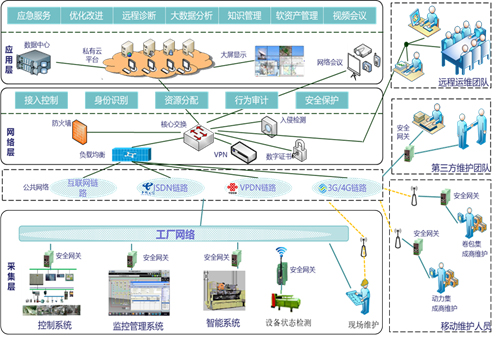 遠(yuǎn)程運(yùn)維服務(wù)平臺(tái)以提升裝備制造企業(yè)關(guān)鍵裝備的服務(wù)和智能化水平為目標(biāo),以云計(jì)算和互聯(lián)網(wǎng)為基礎(chǔ),以設(shè)備全生命周期管理為核心進(jìn)行研發(fā),是一個(gè)面向工業(yè)企業(yè)裝備運(yùn)維服務(wù)的智能云平臺(tái)。提供遠(yuǎn)程智能設(shè)備安全接入與運(yùn)維管理、遠(yuǎn)程用戶運(yùn)維接入與中轉(zhuǎn)、遠(yuǎn)程設(shè)備監(jiān)控與數(shù)據(jù)采集、遠(yuǎn)程設(shè)備數(shù)據(jù)存儲(chǔ)與分析統(tǒng)計(jì)等設(shè)備遠(yuǎn)程運(yùn)維服務(wù)能力,可按照具體的應(yīng)用需求提供個(gè)性化的遠(yuǎn)程運(yùn)維服務(wù)解決方案。