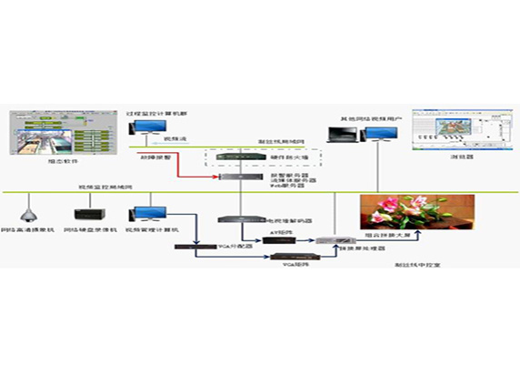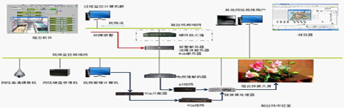 視頻監(jiān)控及顯示系統(tǒng)是自動化生產(chǎn)系統(tǒng)的一個子系統(tǒng),是生產(chǎn)監(jiān)控與調(diào)度體系中的一個重要組成部分,主要由前端設(shè)備、信號處理與控制設(shè)備、視頻顯示設(shè)備和接口設(shè)備構(gòu)成。視頻監(jiān)控系統(tǒng)可以通過對攝像機及其輔助設(shè)備的遠程控制實現(xiàn)對生產(chǎn)區(qū)域的全范圍監(jiān)視,真實準確實時地再現(xiàn)生產(chǎn)場景。監(jiān)控中心可以根據(jù)監(jiān)視現(xiàn)場的實時圖像了解監(jiān)視現(xiàn)場的所有情況,并可以對監(jiān)視現(xiàn)場的進行調(diào)度(如語音調(diào)度等)。同時,視頻監(jiān)控系統(tǒng)還可以被集中監(jiān)控系統(tǒng)進行有機的集成,實現(xiàn)視頻監(jiān)控圖像的嵌入式集成以及與生產(chǎn)報警、消防報警等其他系統(tǒng)出發(fā)信號聯(lián)動運行,進一步豐富監(jiān)控系統(tǒng)功能。昆船公司可以根據(jù)用戶的具體需求提供全系統(tǒng)集成的視頻監(jiān)控系統(tǒng)整體解決方案。
