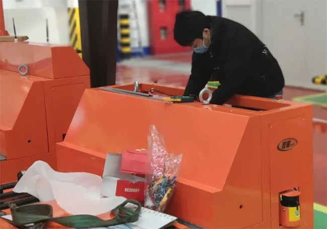 與此同時,AGV的裝配 調試 安調,都在加緊進行中,不少現場開工即進入緊張的加班模式。